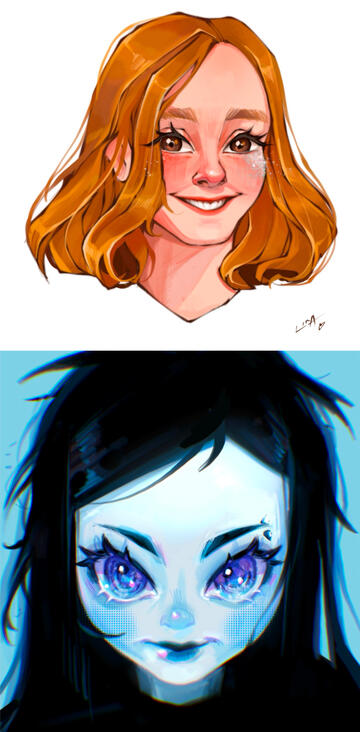 Headshot illustration of a character of your choice with no background or very simple background.Add-ons